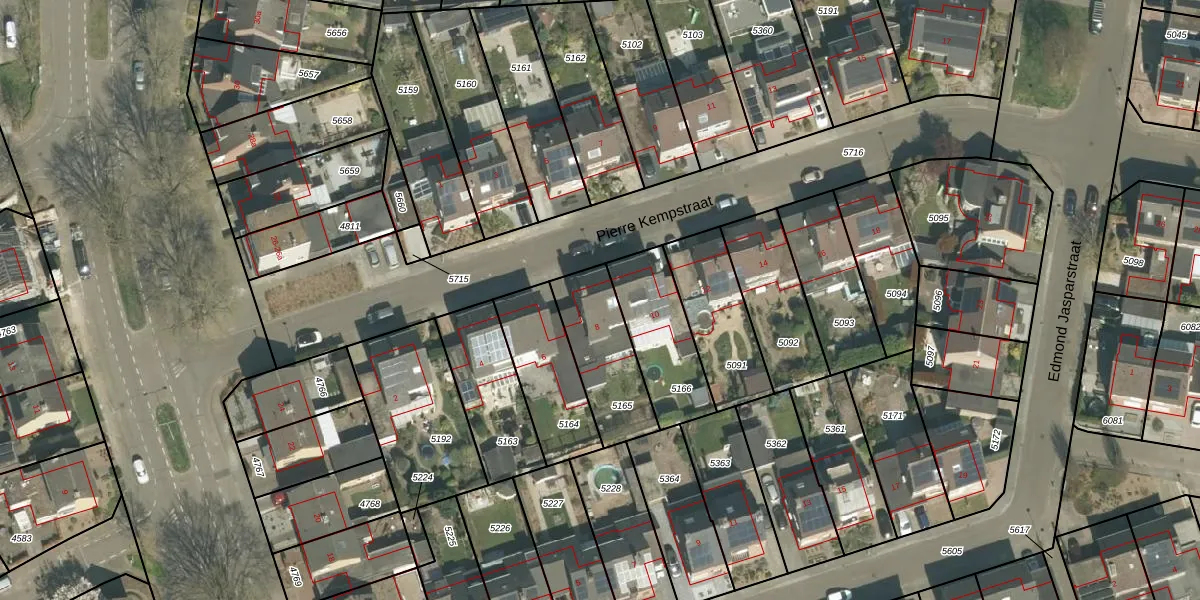 Gebruik de zoekbalk of klik op een perceel voor informatie over de adressen binnen dit perceel.