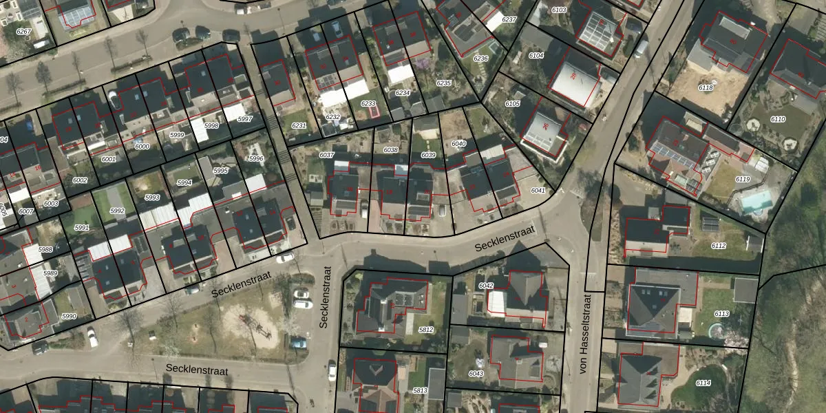 Gebruik de zoekbalk of klik op een perceel voor informatie over de adressen binnen dit perceel.
