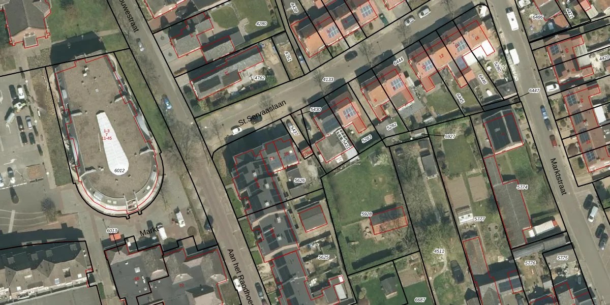 Het perceel waarop St.Servaaslaan 2-TRAF staat heeft een oppervlakte van 55 m². Dit is een klein perceel. De perceeloppervlakte wordt geregistreerd door het Kadaster. Gedetailleerde informatie over de maten van dit perceel kunt u vinden in het rapport Kadastrale kaart met maatvoering van St.Servaaslaan 2-TRAF.