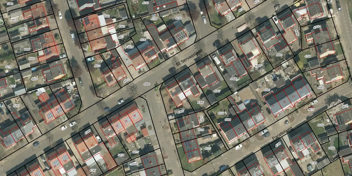 Het perceel waarop St.Servaaslaan 40 staat heeft een oppervlakte van 285 m². Dit is een middelgroot perceel. De perceeloppervlakte wordt geregistreerd door het Kadaster. Gedetailleerde informatie over de maten van dit perceel kunt u vinden in het rapport Kadastrale kaart met maatvoering van St.Servaaslaan 40.