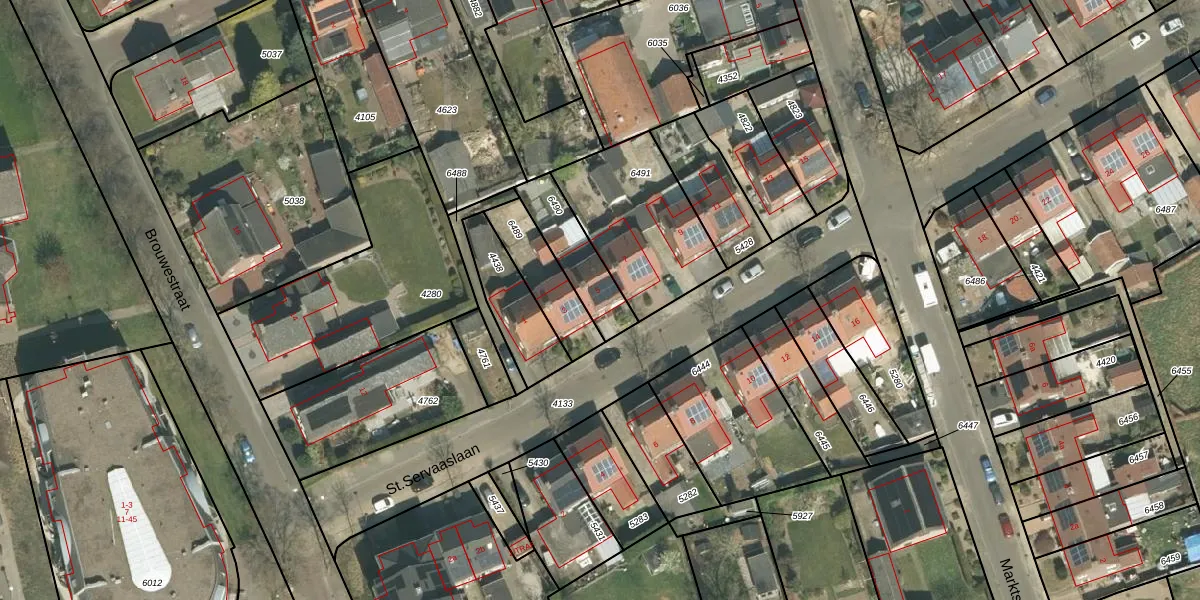 Gebruik de zoekbalk of klik op een perceel voor informatie over de adressen binnen dit perceel.