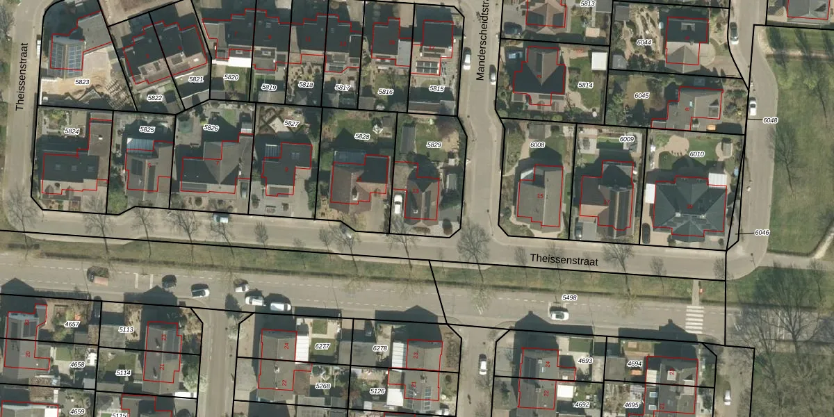 Het perceel waarop Theissenstraat 13 staat heeft een oppervlakte van 487 m². Dit is een groot perceel. De perceeloppervlakte wordt geregistreerd door het Kadaster. Gedetailleerde informatie over de maten van dit perceel kunt u vinden in het rapport Kadastrale kaart met maatvoering van Theissenstraat 13.