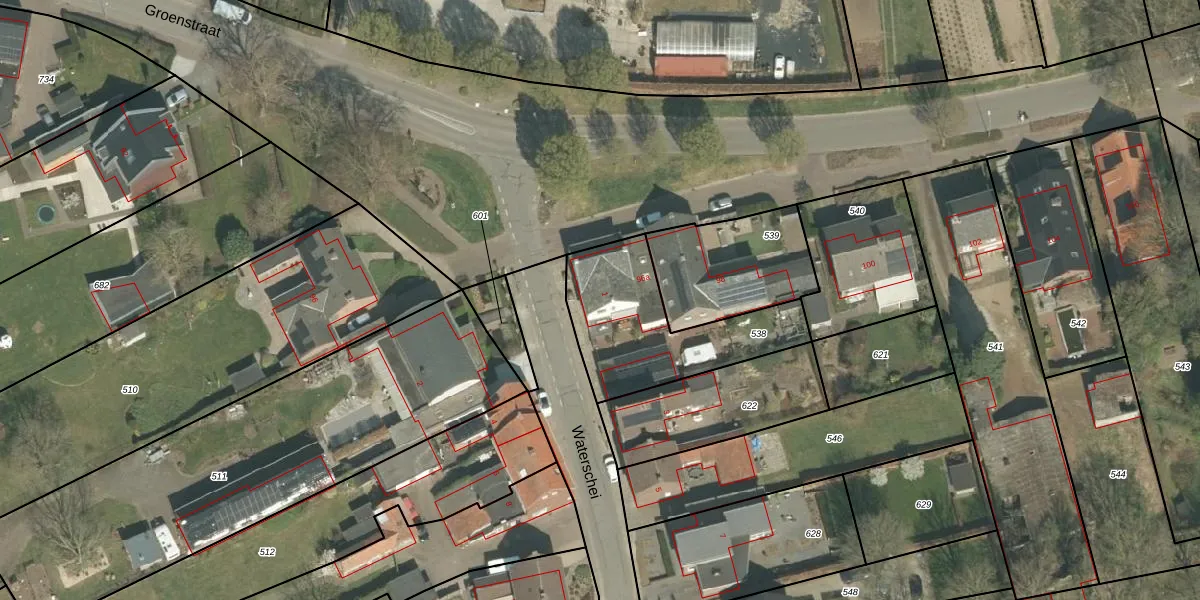 Het perceel waarop Waterschei 1 staat heeft een oppervlakte van 665 m². Dit is een groot perceel. De perceeloppervlakte wordt geregistreerd door het Kadaster. Gedetailleerde informatie over de maten van dit perceel kunt u vinden in het rapport Kadastrale kaart met maatvoering van Waterschei 1.