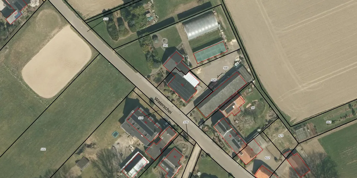 Het perceel waarop Waterschei 63 staat heeft een oppervlakte van 448 m². Dit is een groot perceel. De perceeloppervlakte wordt geregistreerd door het Kadaster. Gedetailleerde informatie over de maten van dit perceel kunt u vinden in het rapport Kadastrale kaart met maatvoering van Waterschei 63.