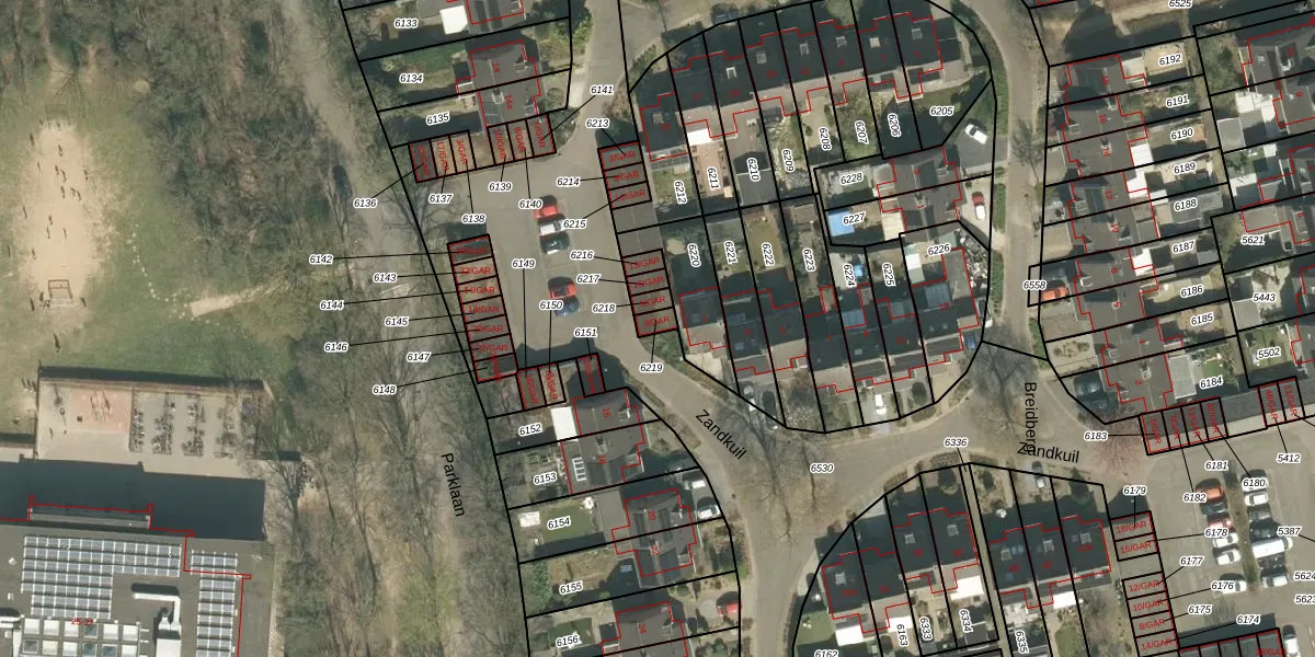 Gebruik de zoekbalk of klik op een perceel voor informatie over de adressen binnen dit perceel.