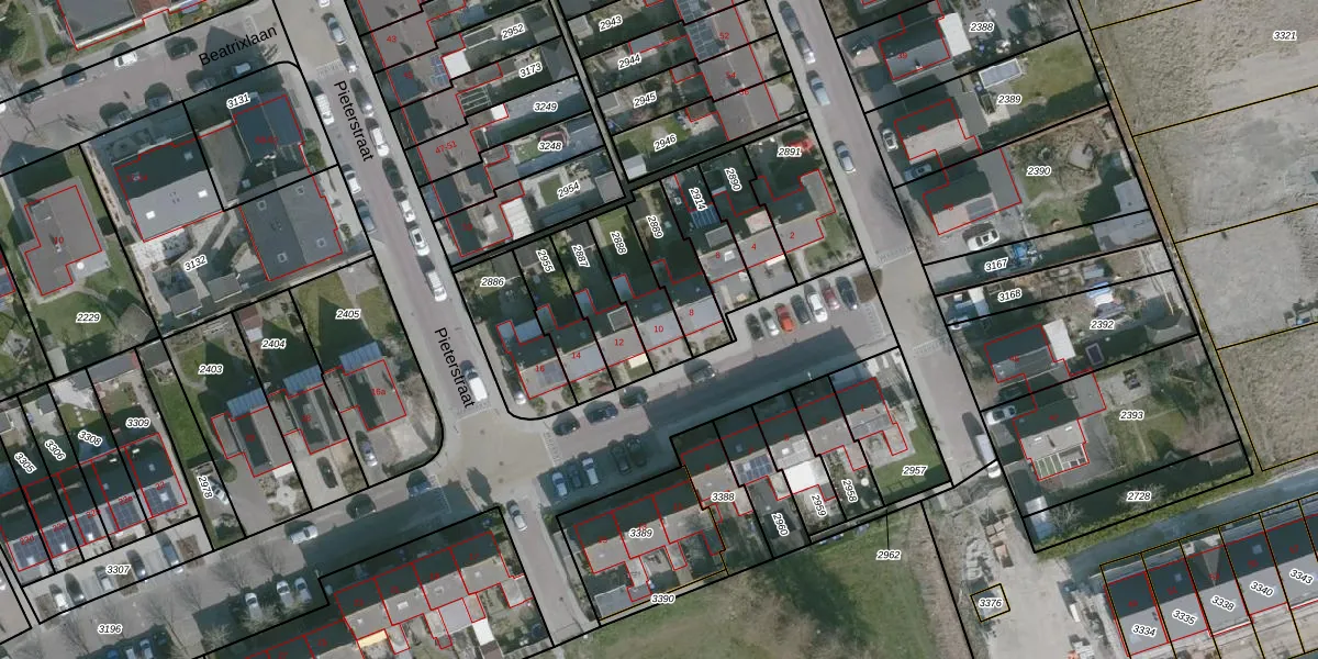 Gebruik de zoekbalk of klik op een perceel voor informatie over de adressen binnen dit perceel.