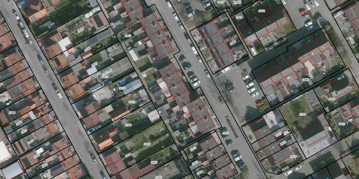 Het perceel waarop Fabiusstraat 84 staat heeft een oppervlakte van 4012 m². Dit is een zeer groot perceel. De perceeloppervlakte wordt geregistreerd door het Kadaster. Gedetailleerde informatie over de maten van dit perceel kunt u vinden in het rapport Kadastrale kaart met maatvoering van Fabiusstraat 84.
