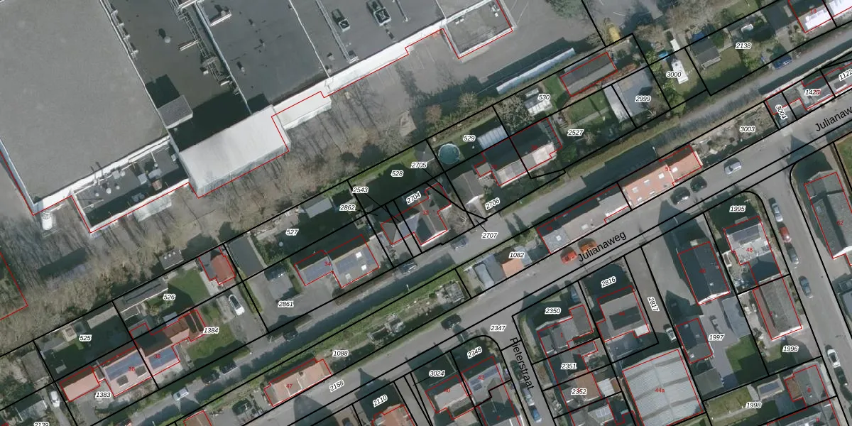 Gebruik de zoekbalk of klik op een perceel voor informatie over de adressen binnen dit perceel.