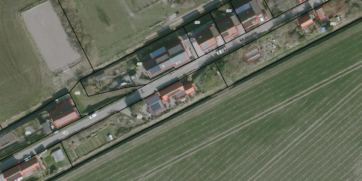 Het perceel waarop Molendijk 47 staat heeft een oppervlakte van 1520 m². Dit is een zeer groot perceel. De perceeloppervlakte wordt geregistreerd door het Kadaster. Gedetailleerde informatie over de maten van dit perceel kunt u vinden in het rapport Kadastrale kaart met maatvoering van Molendijk 47.