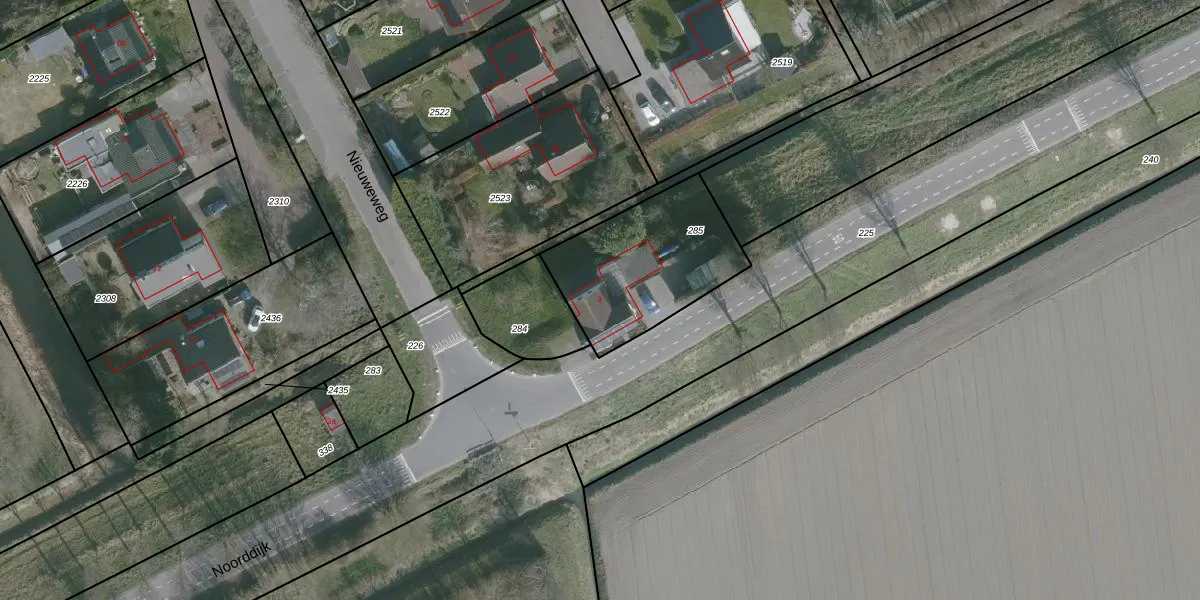 Het perceel waarop Noorddijk 3 staat heeft een oppervlakte van 565 m². Dit is een groot perceel. De perceeloppervlakte wordt geregistreerd door het Kadaster. Gedetailleerde informatie over de maten van dit perceel kunt u vinden in het rapport Kadastrale kaart met maatvoering van Noorddijk 3.