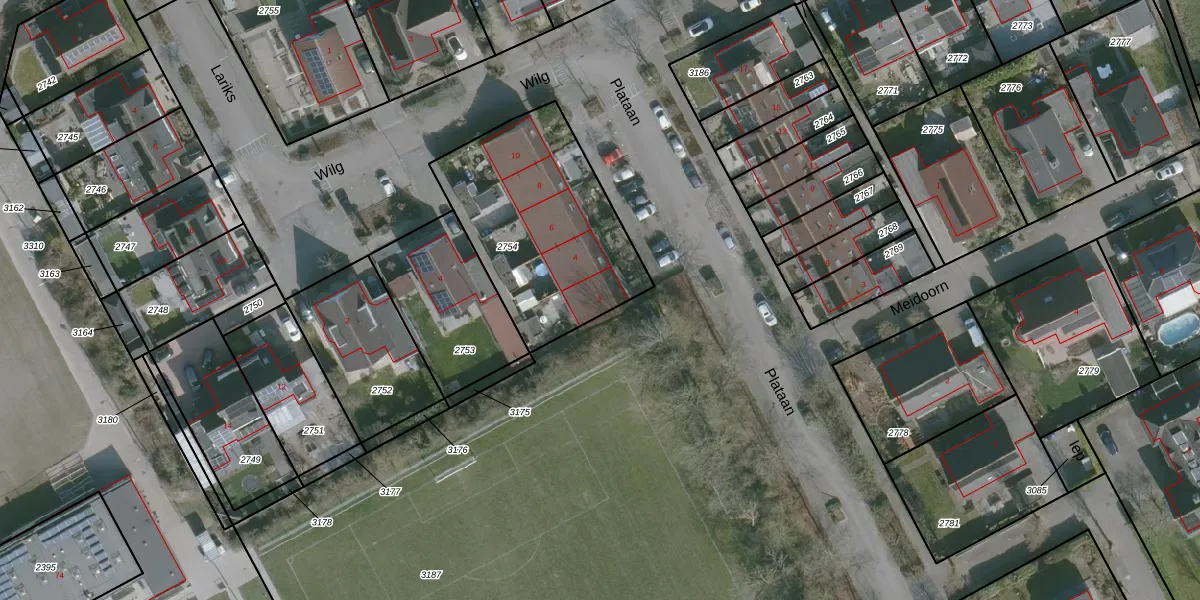 Het perceel waarop Plataan 2 staat heeft een oppervlakte van 841 m². Dit is een groot perceel. De perceeloppervlakte wordt geregistreerd door het Kadaster. Gedetailleerde informatie over de maten van dit perceel kunt u vinden in het rapport Kadastrale kaart met maatvoering van Plataan 2.
