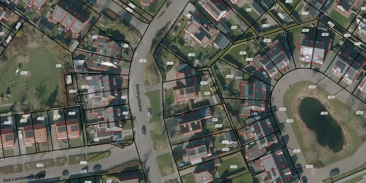 Het perceel waarop Beckrypleane 10 staat heeft een oppervlakte van 553 m². Dit is een groot perceel. De perceeloppervlakte wordt geregistreerd door het Kadaster. Gedetailleerde informatie over de maten van dit perceel kunt u vinden in het rapport Kadastrale kaart met maatvoering van Beckrypleane 10.
