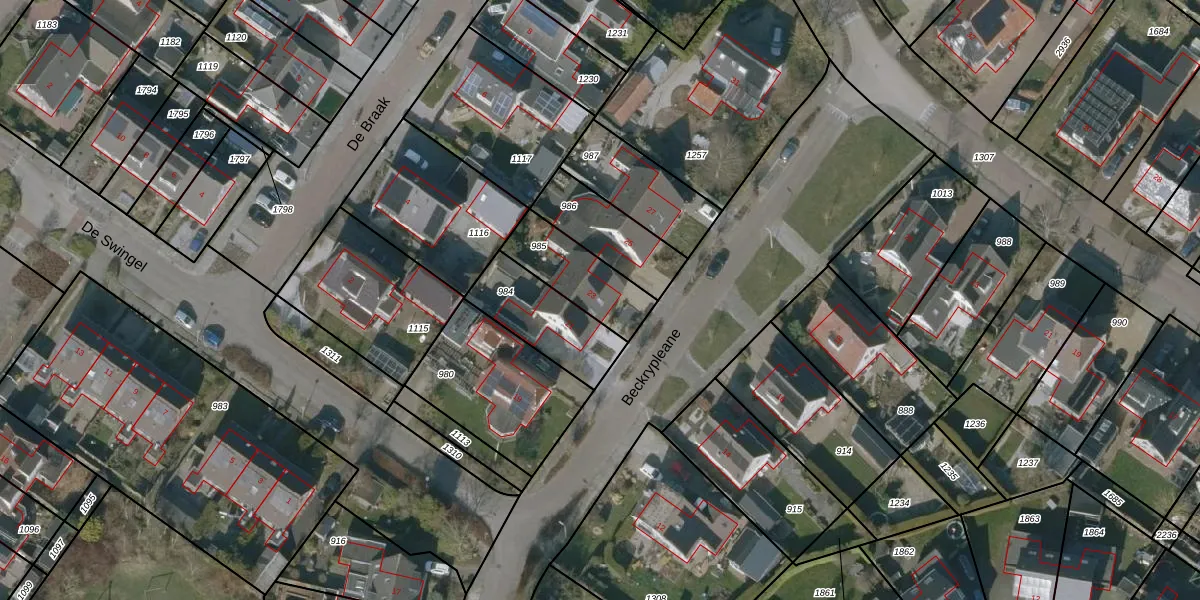 Gebruik de zoekbalk of klik op een perceel voor informatie over de adressen binnen dit perceel.