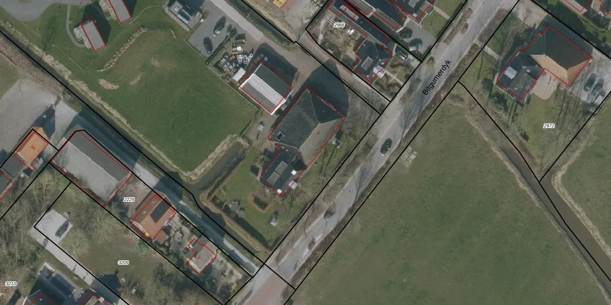 Het perceel waarop Bitgumerdyk 5 staat heeft een oppervlakte van 1,4 ha. Dit is een zeer groot perceel. De perceeloppervlakte wordt geregistreerd door het Kadaster. Gedetailleerde informatie over de maten van dit perceel kunt u vinden in het rapport Kadastrale kaart met maatvoering van Bitgumerdyk 5.