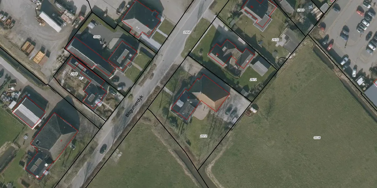 Het perceel waarop Bitgumerdyk 8 staat heeft een oppervlakte van 1690 m². Dit is een zeer groot perceel. De perceeloppervlakte wordt geregistreerd door het Kadaster. Gedetailleerde informatie over de maten van dit perceel kunt u vinden in het rapport Kadastrale kaart met maatvoering van Bitgumerdyk 8.