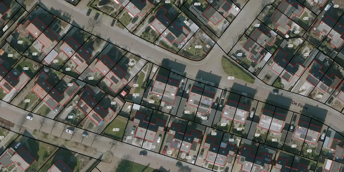 Het perceel waarop De Finne 17 staat heeft een oppervlakte van 257 m². Dit is een middelgroot perceel. De perceeloppervlakte wordt geregistreerd door het Kadaster. Gedetailleerde informatie over de maten van dit perceel kunt u vinden in het rapport Kadastrale kaart met maatvoering van De Finne 17.