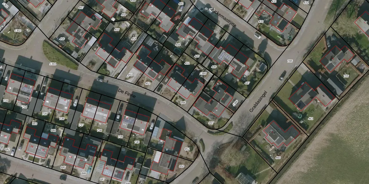 Het perceel waarop De Finne 4 staat heeft een oppervlakte van 274 m². Dit is een middelgroot perceel. De perceeloppervlakte wordt geregistreerd door het Kadaster. Gedetailleerde informatie over de maten van dit perceel kunt u vinden in het rapport Kadastrale kaart met maatvoering van De Finne 4.