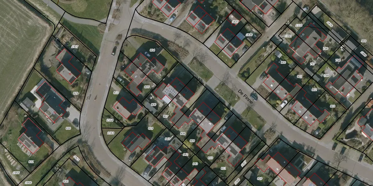 Het perceel waarop De Finne 41 staat heeft een oppervlakte van 292 m². Dit is een middelgroot perceel. De perceeloppervlakte wordt geregistreerd door het Kadaster. Gedetailleerde informatie over de maten van dit perceel kunt u vinden in het rapport Kadastrale kaart met maatvoering van De Finne 41.