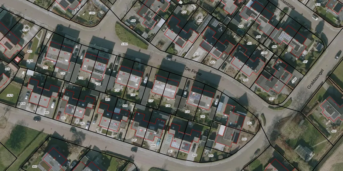 Het perceel waarop De Finne 5 staat heeft een oppervlakte van 250 m². Dit is een middelgroot perceel. De perceeloppervlakte wordt geregistreerd door het Kadaster. Gedetailleerde informatie over de maten van dit perceel kunt u vinden in het rapport Kadastrale kaart met maatvoering van De Finne 5.