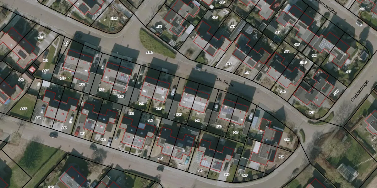 Het perceel waarop De Finne 7 staat heeft een oppervlakte van 251 m². Dit is een middelgroot perceel. De perceeloppervlakte wordt geregistreerd door het Kadaster. Gedetailleerde informatie over de maten van dit perceel kunt u vinden in het rapport Kadastrale kaart met maatvoering van De Finne 7.