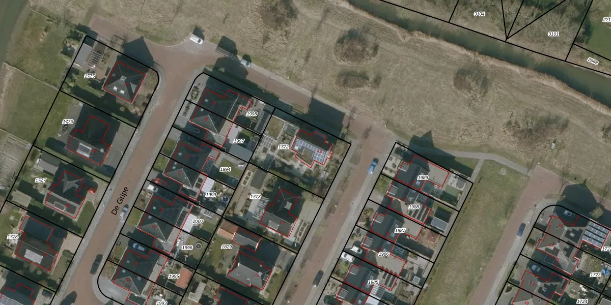 Het perceel waarop De Gripe 19 staat heeft een oppervlakte van 550 m². Dit is een groot perceel. De perceeloppervlakte wordt geregistreerd door het Kadaster. Gedetailleerde informatie over de maten van dit perceel kunt u vinden in het rapport Kadastrale kaart met maatvoering van De Gripe 19.
