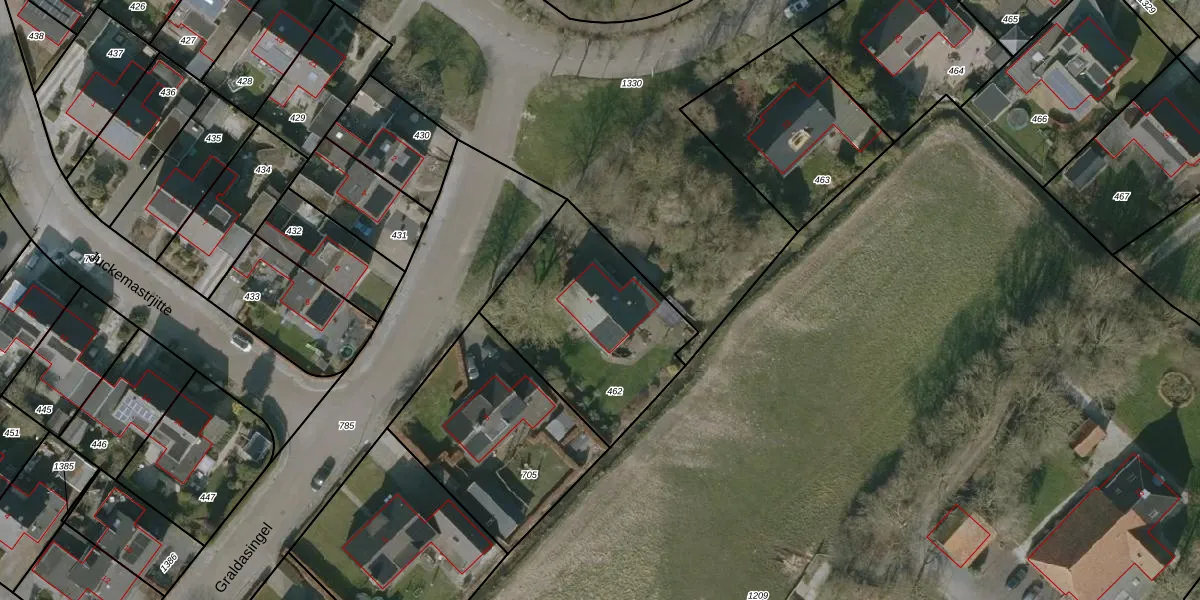 Het perceel waarop Graldasingel 1 staat heeft een oppervlakte van 765 m². Dit is een groot perceel. De perceeloppervlakte wordt geregistreerd door het Kadaster. Gedetailleerde informatie over de maten van dit perceel kunt u vinden in het rapport Kadastrale kaart met maatvoering van Graldasingel 1.