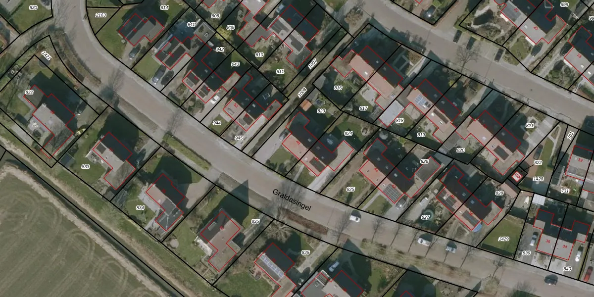 Het perceel waarop Graldasingel 48 staat heeft een oppervlakte van 388 m². Dit is een groot perceel. De perceeloppervlakte wordt geregistreerd door het Kadaster. Gedetailleerde informatie over de maten van dit perceel kunt u vinden in het rapport Kadastrale kaart met maatvoering van Graldasingel 48.
