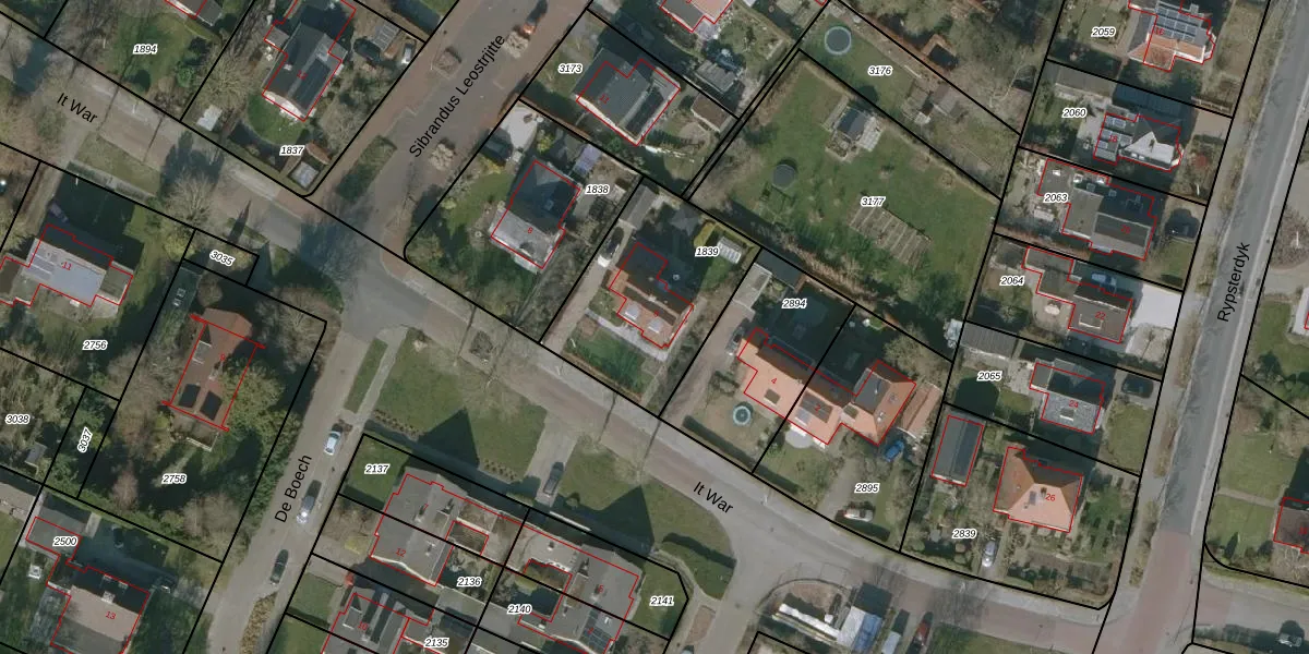 Gebruik de zoekbalk of klik op een perceel voor informatie over de adressen binnen dit perceel.