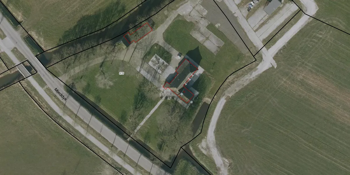 Het perceel waarop Mieddyk 41 staat heeft een oppervlakte van 5930 m². Dit is een zeer groot perceel. De perceeloppervlakte wordt geregistreerd door het Kadaster. Gedetailleerde informatie over de maten van dit perceel kunt u vinden in het rapport Kadastrale kaart met maatvoering van Mieddyk 41.