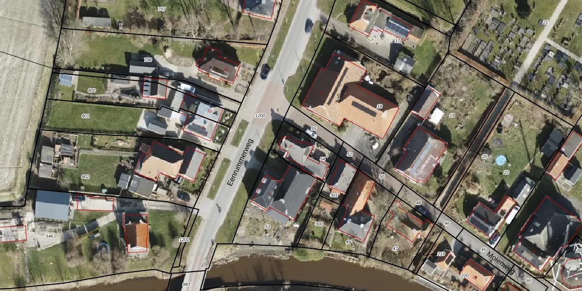 Eenrummerweg 3 is gelegen op kadastraal perceel LEE02I54. Deze kadastrale aanduiding is uniek en wordt gebruikt door het Kadaster om eigendomsrechten en andere zakelijke rechten vast te leggen. Het perceel maakt onderdeel uit van de kadastrale gemeente Leens.