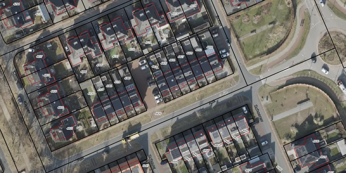 Het perceel waarop Aak 12 staat heeft een oppervlakte van 162 m². Dit is een middelgroot perceel. De perceeloppervlakte wordt geregistreerd door het Kadaster. Gedetailleerde informatie over de maten van dit perceel kunt u vinden in het rapport Kadastrale kaart met maatvoering van Aak 12.