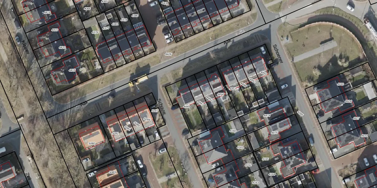 Het perceel waarop Aak 15 staat heeft een oppervlakte van 292 m². Dit is een middelgroot perceel. De perceeloppervlakte wordt geregistreerd door het Kadaster. Gedetailleerde informatie over de maten van dit perceel kunt u vinden in het rapport Kadastrale kaart met maatvoering van Aak 15.