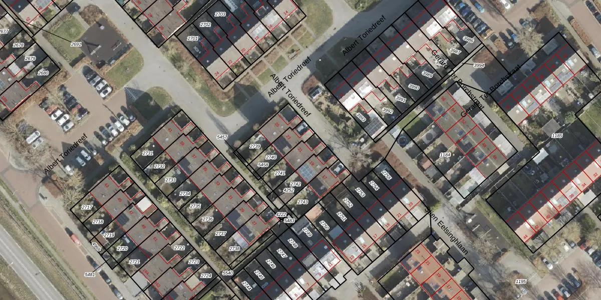 Gebruik de zoekbalk of klik op een perceel voor informatie over de adressen binnen dit perceel.