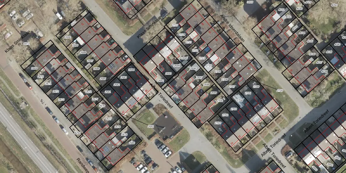 Gebruik de zoekbalk of klik op een perceel voor informatie over de adressen binnen dit perceel.