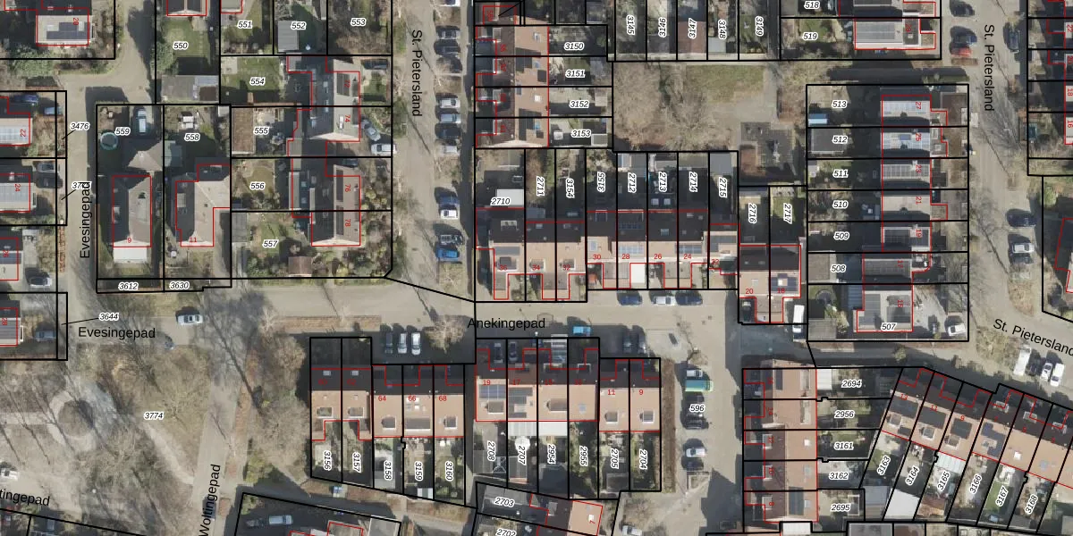 Gebruik de zoekbalk of klik op een perceel voor informatie over de adressen binnen dit perceel.