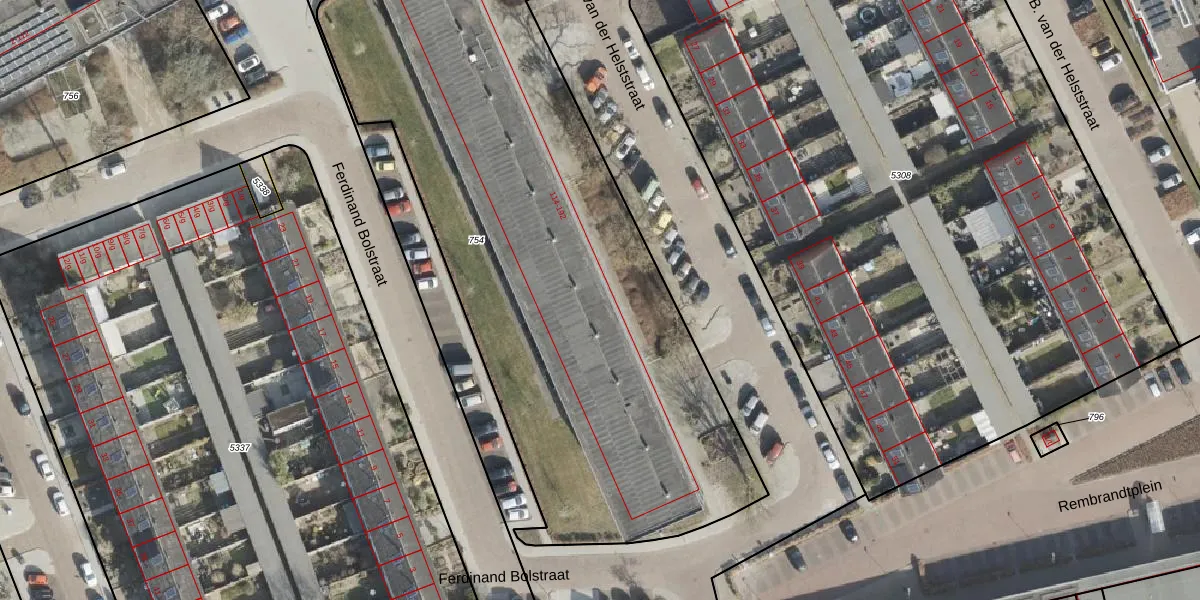 Het perceel waarop B. van der Helststraat 162 staat heeft een oppervlakte van 3538 m². Dit is een zeer groot perceel. De perceeloppervlakte wordt geregistreerd door het Kadaster. Gedetailleerde informatie over de maten van dit perceel kunt u vinden in het rapport Kadastrale kaart met maatvoering van B. van der Helststraat 162.