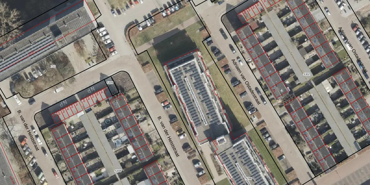 Het perceel waarop B. van der Helststraat 2-A-3 staat heeft een oppervlakte van 4208 m². Dit is een zeer groot perceel. De perceeloppervlakte wordt geregistreerd door het Kadaster. Gedetailleerde informatie over de maten van dit perceel kunt u vinden in het rapport Kadastrale kaart met maatvoering van B. van der Helststraat 2-A-3.