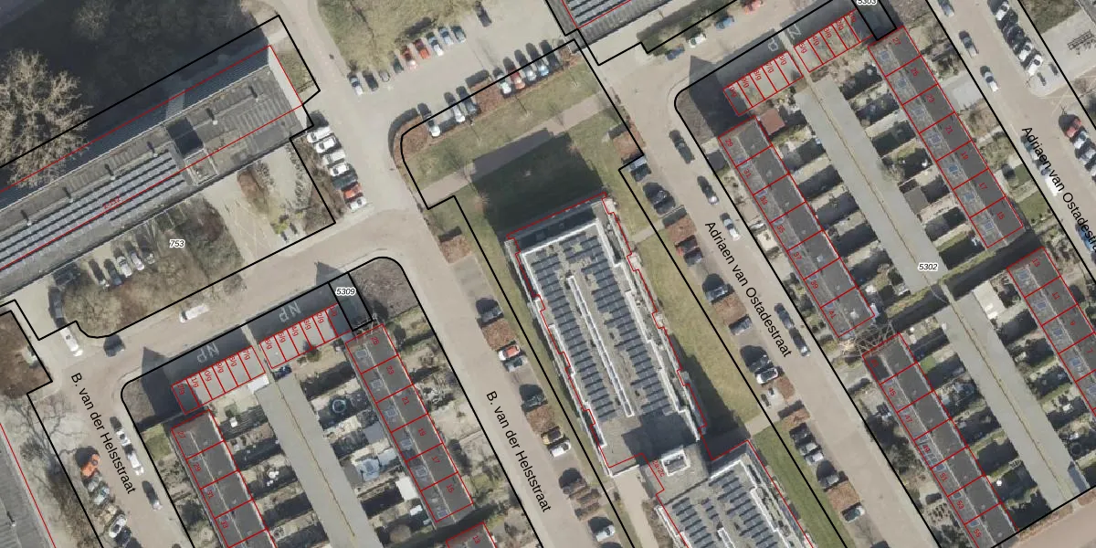 Het perceel waarop B. van der Helststraat 2-A-4 staat heeft een oppervlakte van 4208 m². Dit is een zeer groot perceel. De perceeloppervlakte wordt geregistreerd door het Kadaster. Gedetailleerde informatie over de maten van dit perceel kunt u vinden in het rapport Kadastrale kaart met maatvoering van B. van der Helststraat 2-A-4.