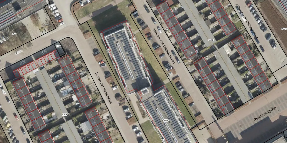 Het perceel waarop B. van der Helststraat 2-B-8 staat heeft een oppervlakte van 4208 m². Dit is een zeer groot perceel. De perceeloppervlakte wordt geregistreerd door het Kadaster. Gedetailleerde informatie over de maten van dit perceel kunt u vinden in het rapport Kadastrale kaart met maatvoering van B. van der Helststraat 2-B-8.