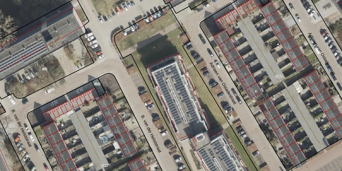 Het perceel waarop B. van der Helststraat 2-C-2 staat heeft een oppervlakte van 4208 m². Dit is een zeer groot perceel. De perceeloppervlakte wordt geregistreerd door het Kadaster. Gedetailleerde informatie over de maten van dit perceel kunt u vinden in het rapport Kadastrale kaart met maatvoering van B. van der Helststraat 2-C-2.