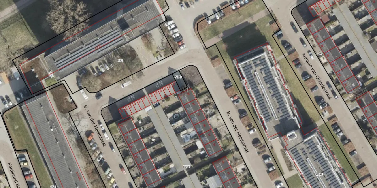Het perceel waarop B. van der Helststraat 25 staat heeft een oppervlakte van 5280 m². Dit is een zeer groot perceel. De perceeloppervlakte wordt geregistreerd door het Kadaster. Gedetailleerde informatie over de maten van dit perceel kunt u vinden in het rapport Kadastrale kaart met maatvoering van B. van der Helststraat 25.