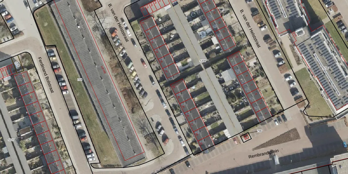 Het perceel waarop B. van der Helststraat 39 staat heeft een oppervlakte van 5280 m². Dit is een zeer groot perceel. De perceeloppervlakte wordt geregistreerd door het Kadaster. Gedetailleerde informatie over de maten van dit perceel kunt u vinden in het rapport Kadastrale kaart met maatvoering van B. van der Helststraat 39.
