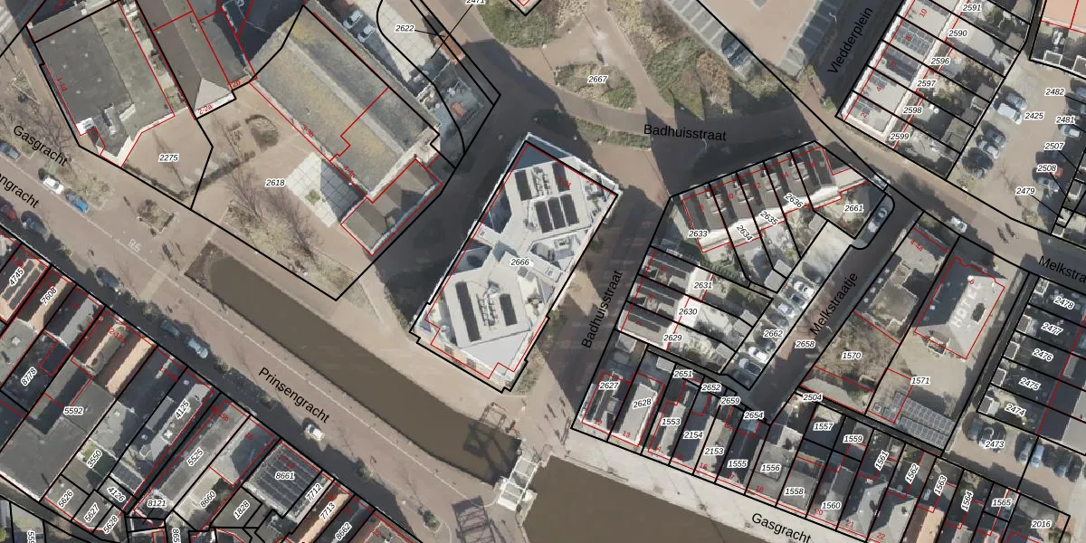 Het perceel waarop Badhuisstraat 5 staat heeft een oppervlakte van 844 m². Dit is een groot perceel. De perceeloppervlakte wordt geregistreerd door het Kadaster. Gedetailleerde informatie over de maten van dit perceel kunt u vinden in het rapport Kadastrale kaart met maatvoering van Badhuisstraat 5.