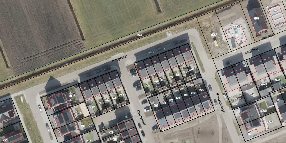 Het perceel waarop Baggelaar 6 staat heeft een oppervlakte van 174 m². Dit is een middelgroot perceel. De perceeloppervlakte wordt geregistreerd door het Kadaster. Gedetailleerde informatie over de maten van dit perceel kunt u vinden in het rapport Kadastrale kaart met maatvoering van Baggelaar 6.