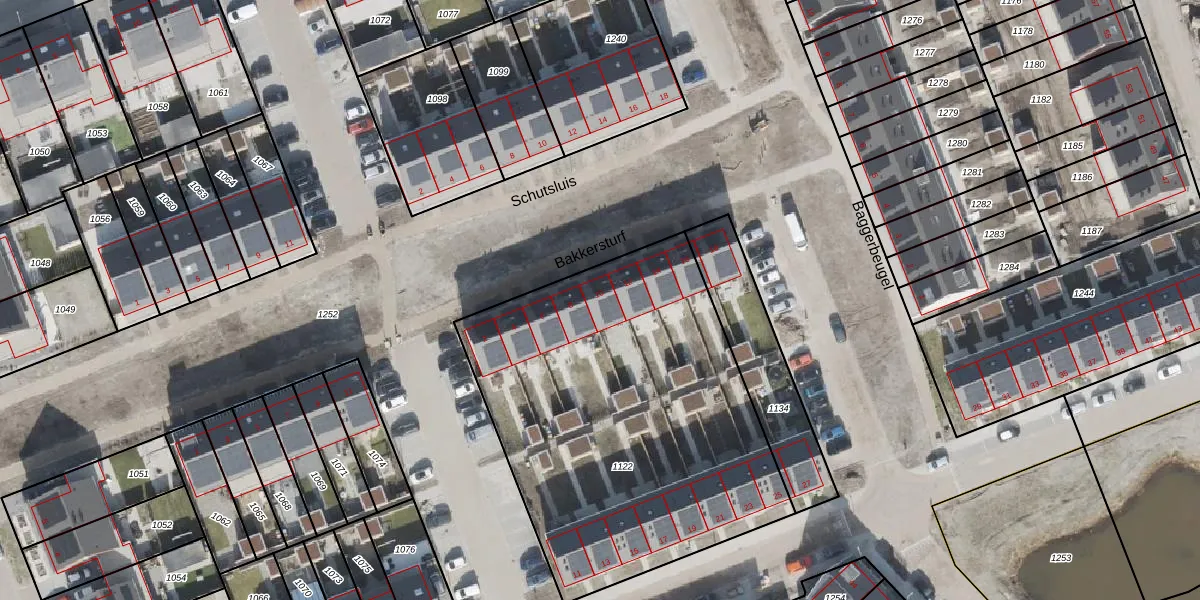 Het perceel waarop Bakkersturf 10 staat heeft een oppervlakte van 2090 m². Dit is een zeer groot perceel. De perceeloppervlakte wordt geregistreerd door het Kadaster. Gedetailleerde informatie over de maten van dit perceel kunt u vinden in het rapport Kadastrale kaart met maatvoering van Bakkersturf 10.
