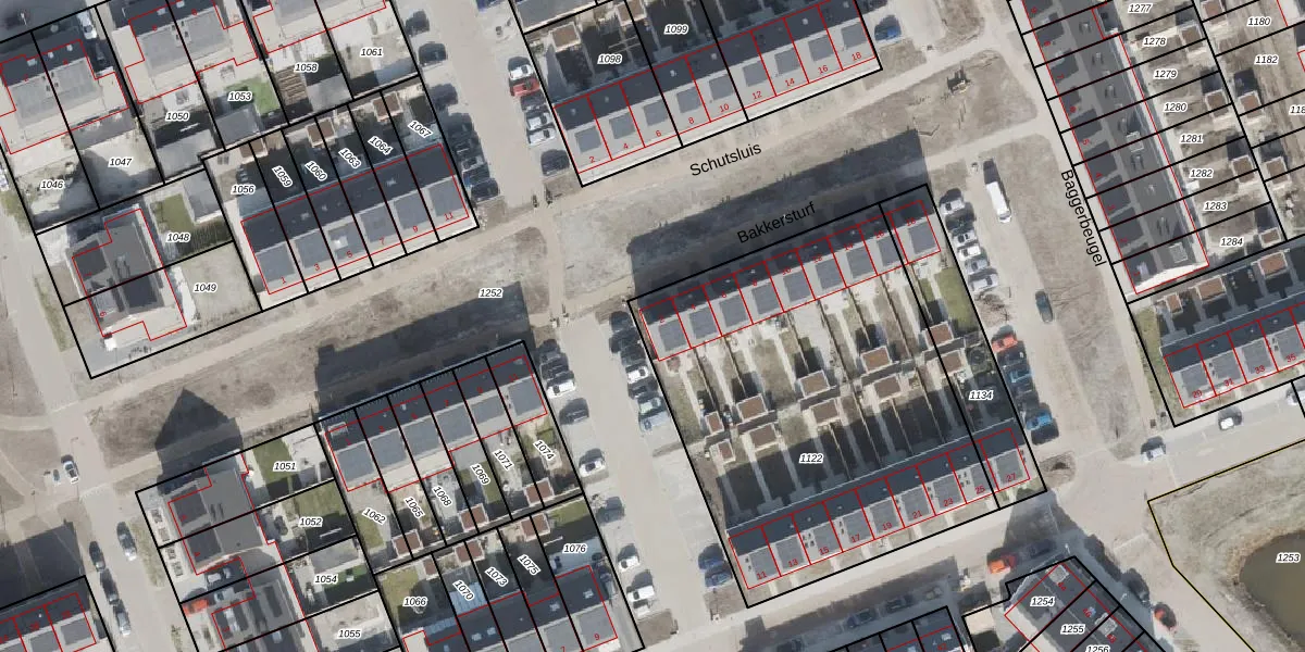 Het perceel waarop Bakkersturf 2 staat heeft een oppervlakte van 2090 m². Dit is een zeer groot perceel. De perceeloppervlakte wordt geregistreerd door het Kadaster. Gedetailleerde informatie over de maten van dit perceel kunt u vinden in het rapport Kadastrale kaart met maatvoering van Bakkersturf 2.