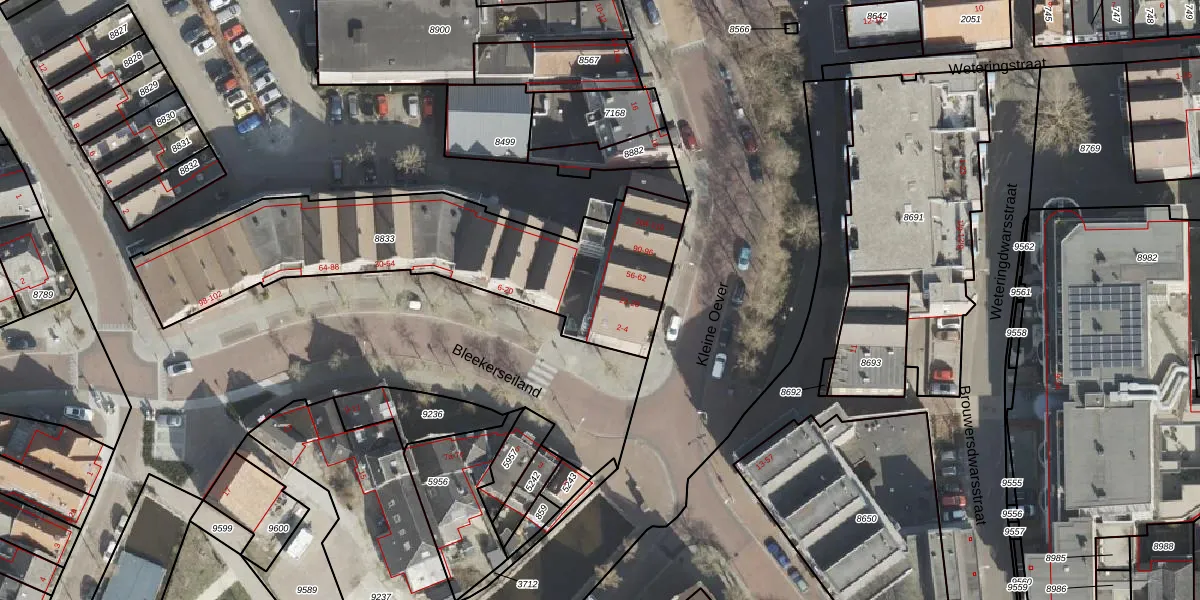 Het perceel waarop Bleekerseiland 104 staat heeft een oppervlakte van 1336 m². Dit is een zeer groot perceel. De perceeloppervlakte wordt geregistreerd door het Kadaster. Gedetailleerde informatie over de maten van dit perceel kunt u vinden in het rapport Kadastrale kaart met maatvoering van Bleekerseiland 104.