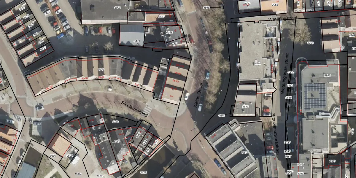 Het perceel waarop Bleekerseiland 58 staat heeft een oppervlakte van 1336 m². Dit is een zeer groot perceel. De perceeloppervlakte wordt geregistreerd door het Kadaster. Gedetailleerde informatie over de maten van dit perceel kunt u vinden in het rapport Kadastrale kaart met maatvoering van Bleekerseiland 58.