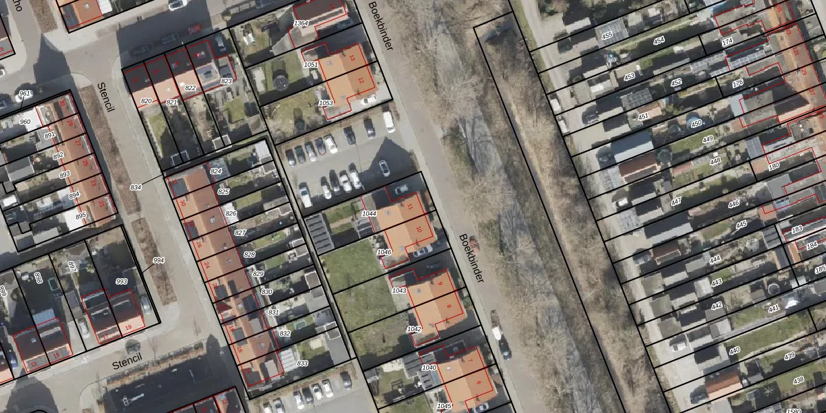 Het perceel waarop Boekbinder 11 staat heeft een oppervlakte van 308 m². Dit is een groot perceel. De perceeloppervlakte wordt geregistreerd door het Kadaster. Gedetailleerde informatie over de maten van dit perceel kunt u vinden in het rapport Kadastrale kaart met maatvoering van Boekbinder 11.
