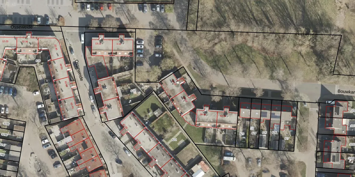 Het perceel waarop Bouwkamp 14 staat heeft een oppervlakte van 2549 m². Dit is een zeer groot perceel. De perceeloppervlakte wordt geregistreerd door het Kadaster. Gedetailleerde informatie over de maten van dit perceel kunt u vinden in het rapport Kadastrale kaart met maatvoering van Bouwkamp 14.
